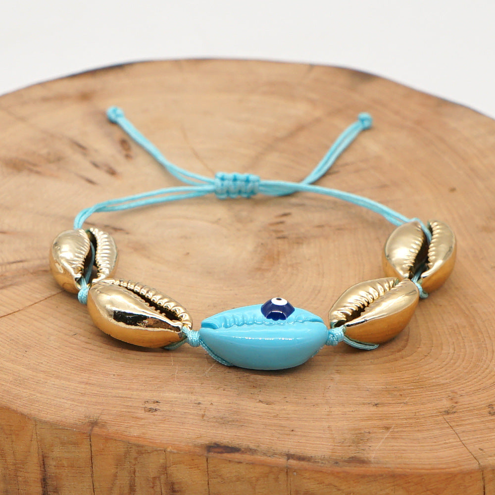 Wholesale Colorful Gold Plated Natural Seashell Oil Drip Eyes Hand Woven Bracelet