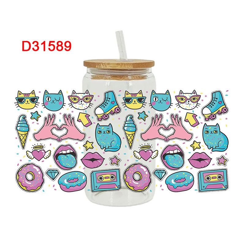 Wholesale Uv Transfer Sticker Glass Cup Crystal Sticker 16oz Cup UV DTF Wraps