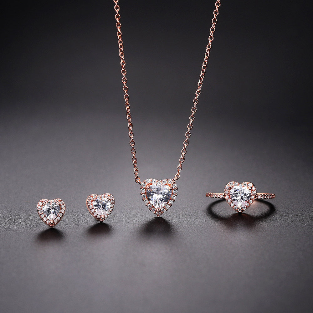 Wholesale Gold-plated Copper Heart-shaped Zircon Ring Set of Three