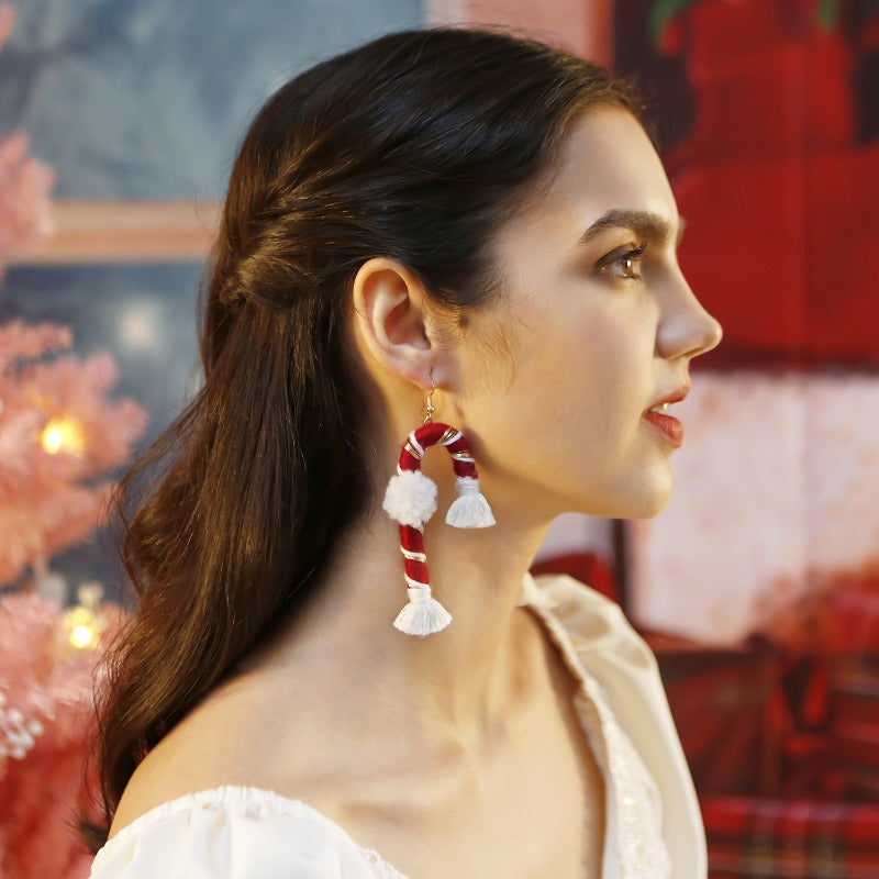 Wholesale Hand Woven Cane Tassel Christmas Earrings