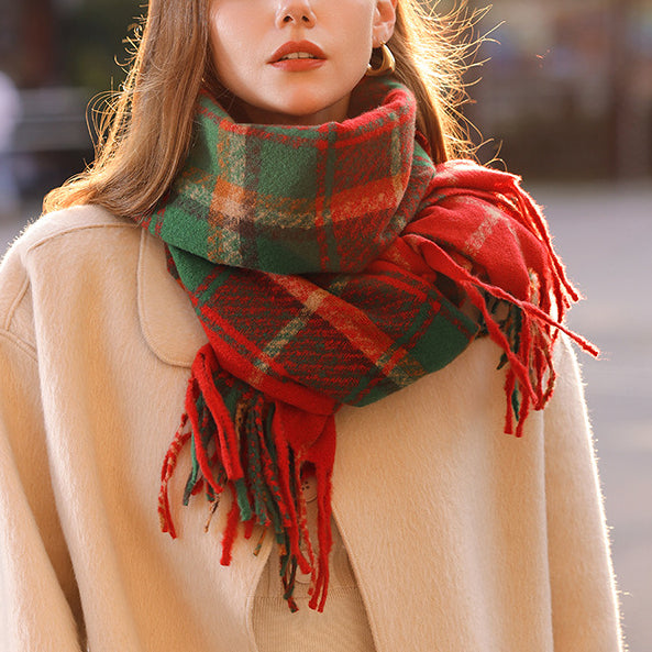 Wholesale Winter Christmas Imitation Cashmere Plaid Warm Scarves