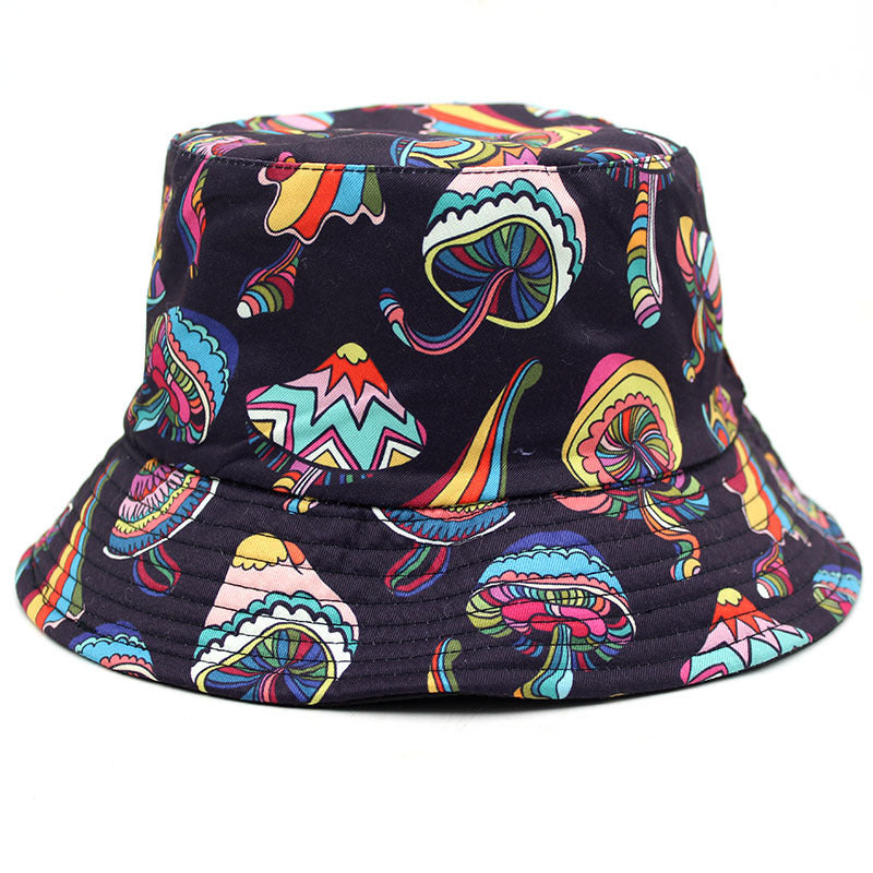 Wholesale Cotton Polyester Cute Colorful Mushroom Printing Fisherman Hat