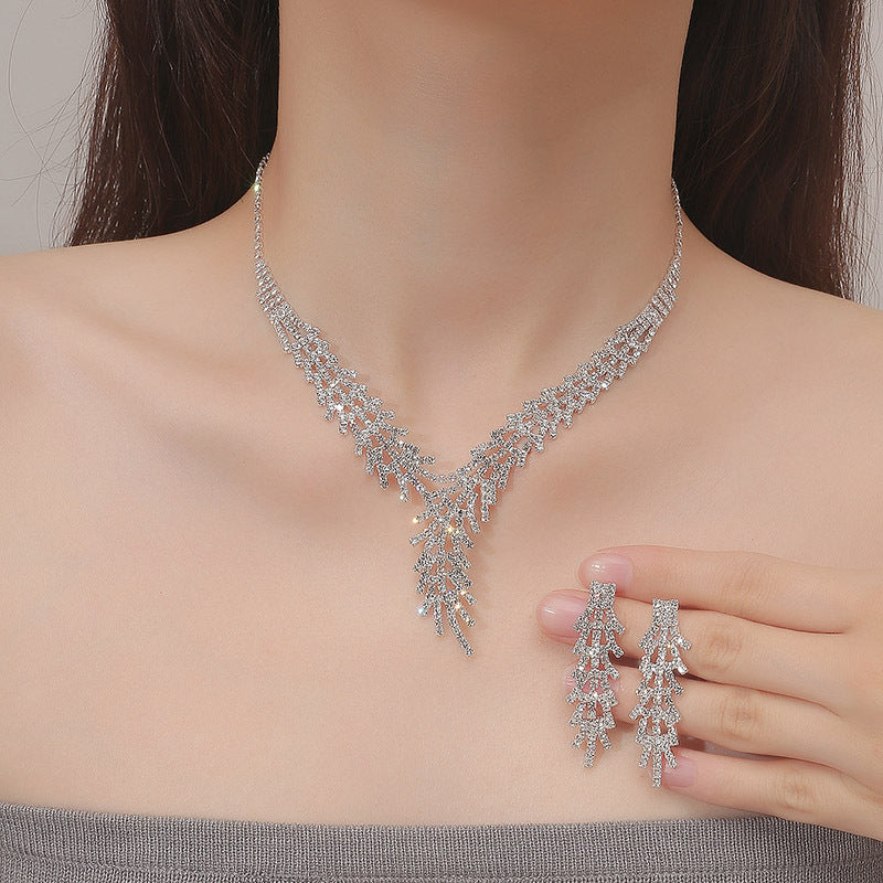Wholesale Bridal Necklace Earrings Claw Chain Rhinestone Bridal Set Ornaments