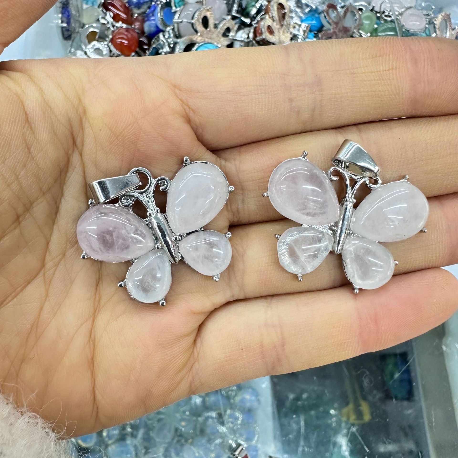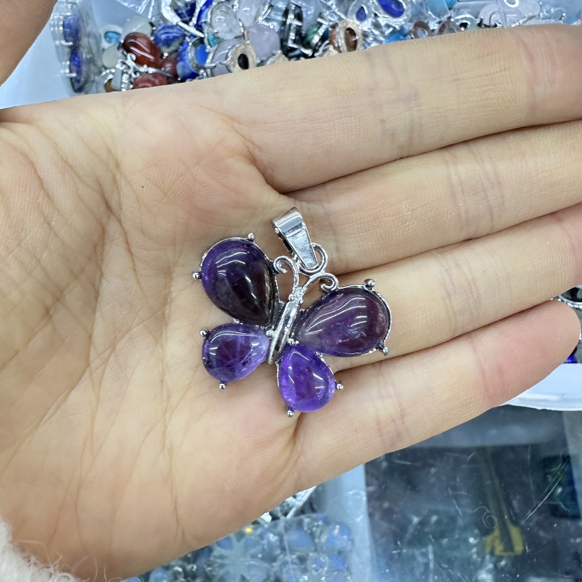 Wholesale Crystal Butterfly Pendant Amethyst Tiger Eye Natural Stone Necklace