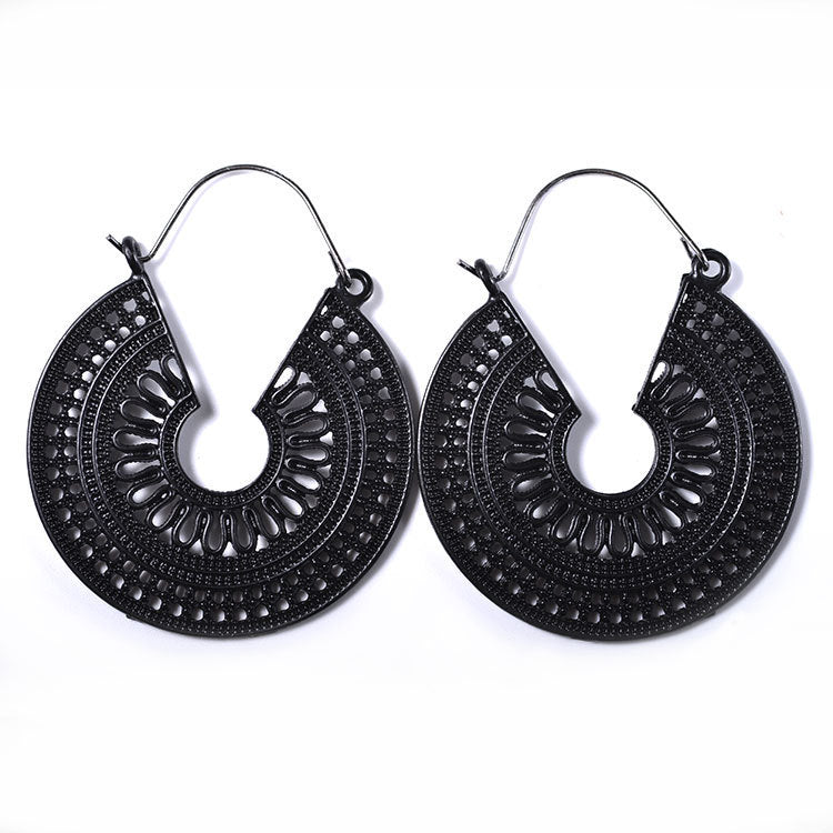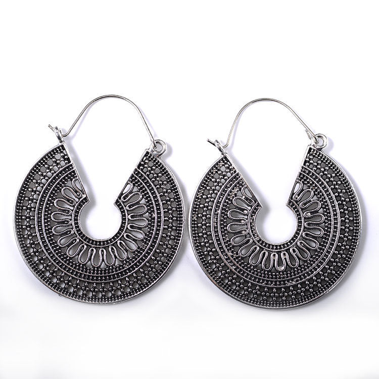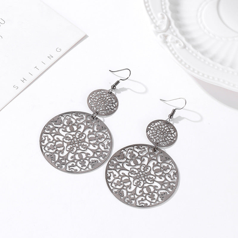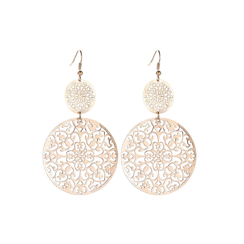 Wholesale Retro Metal Hollow Flower Bohemian Carved Court Style Earrings