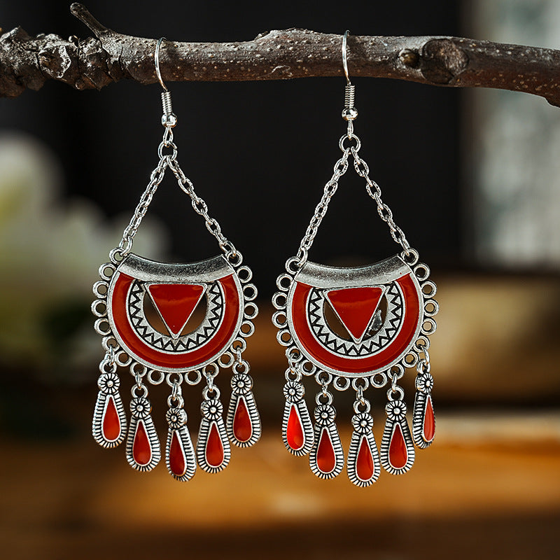 Wholesale Fan-shaped Chain Dripping Oil Retro Craft Multi-layer Alloy Earrings