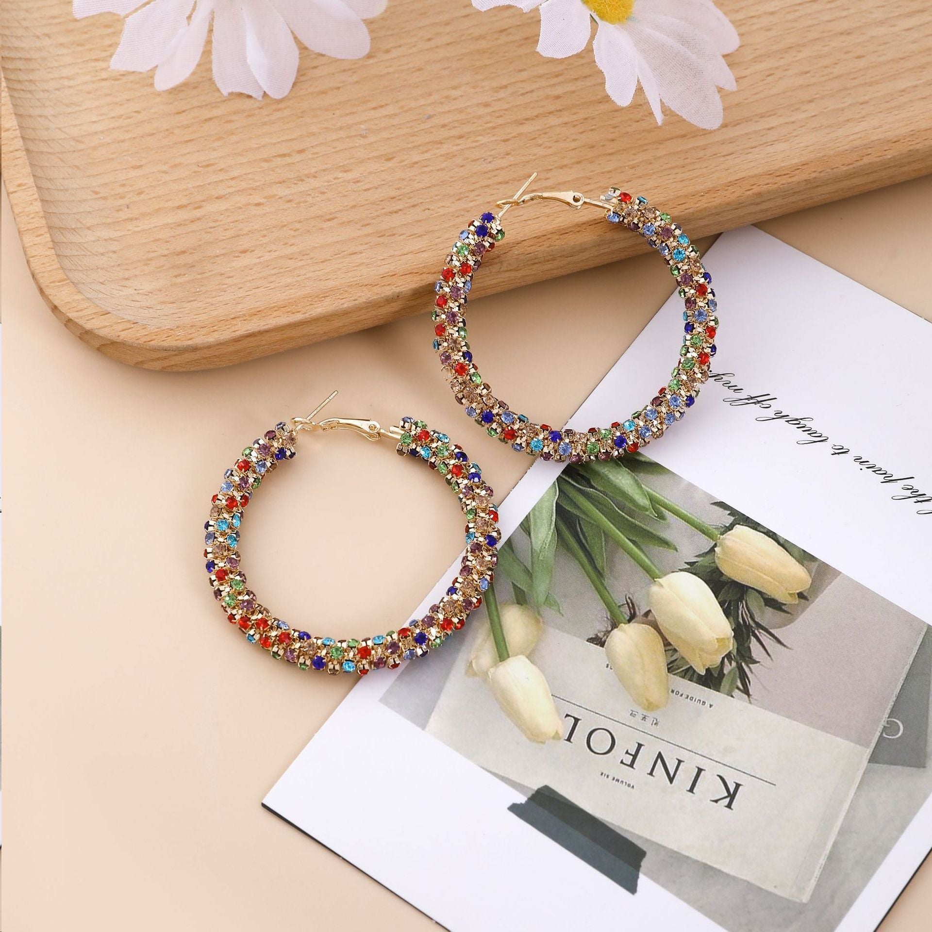 Wholesale Fashion Light Luxury Diamond Large Women's Round Simple Elegant Earrings