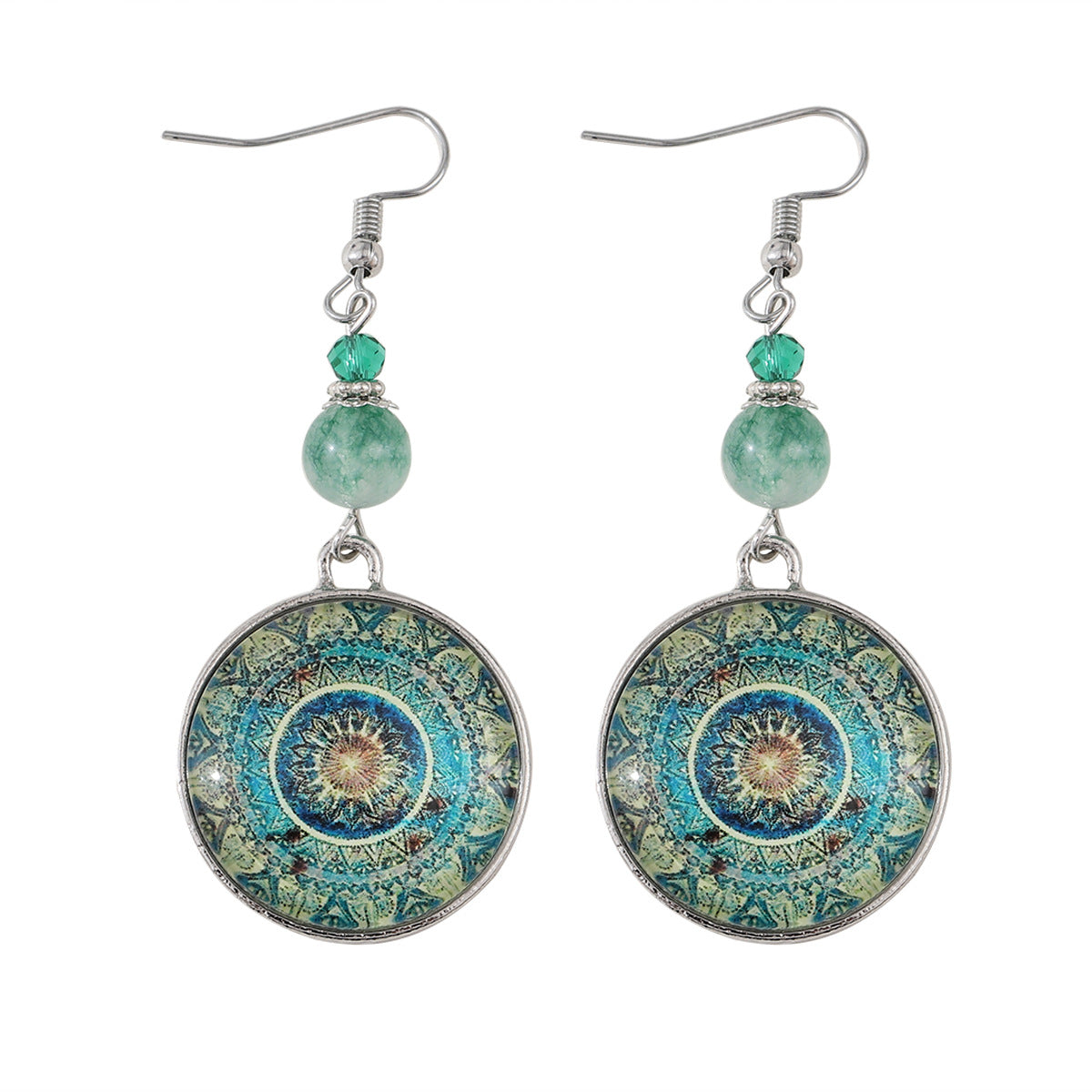 Wholesale retro mandala flower Time Gem ethnic style dream catcher long pendant earrings