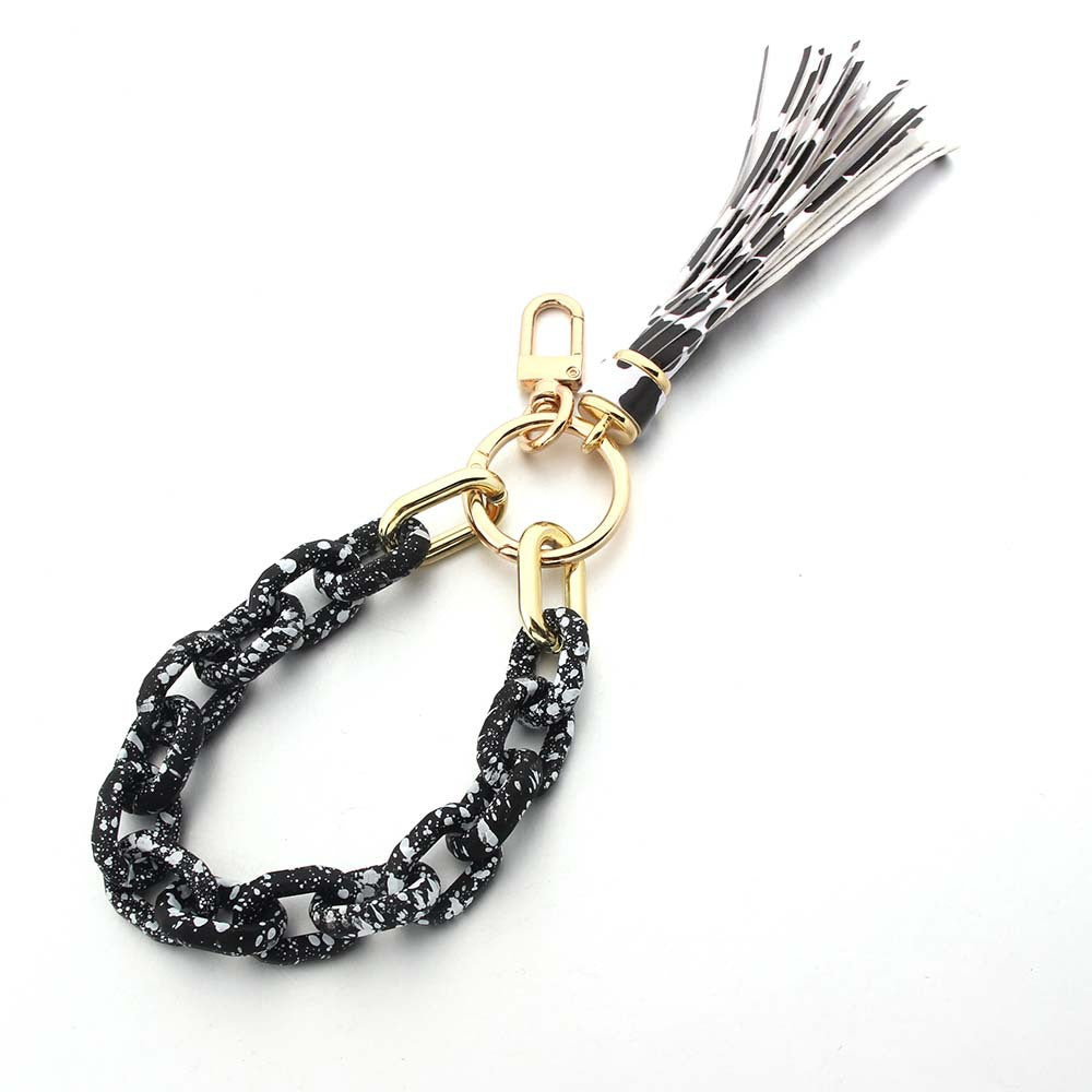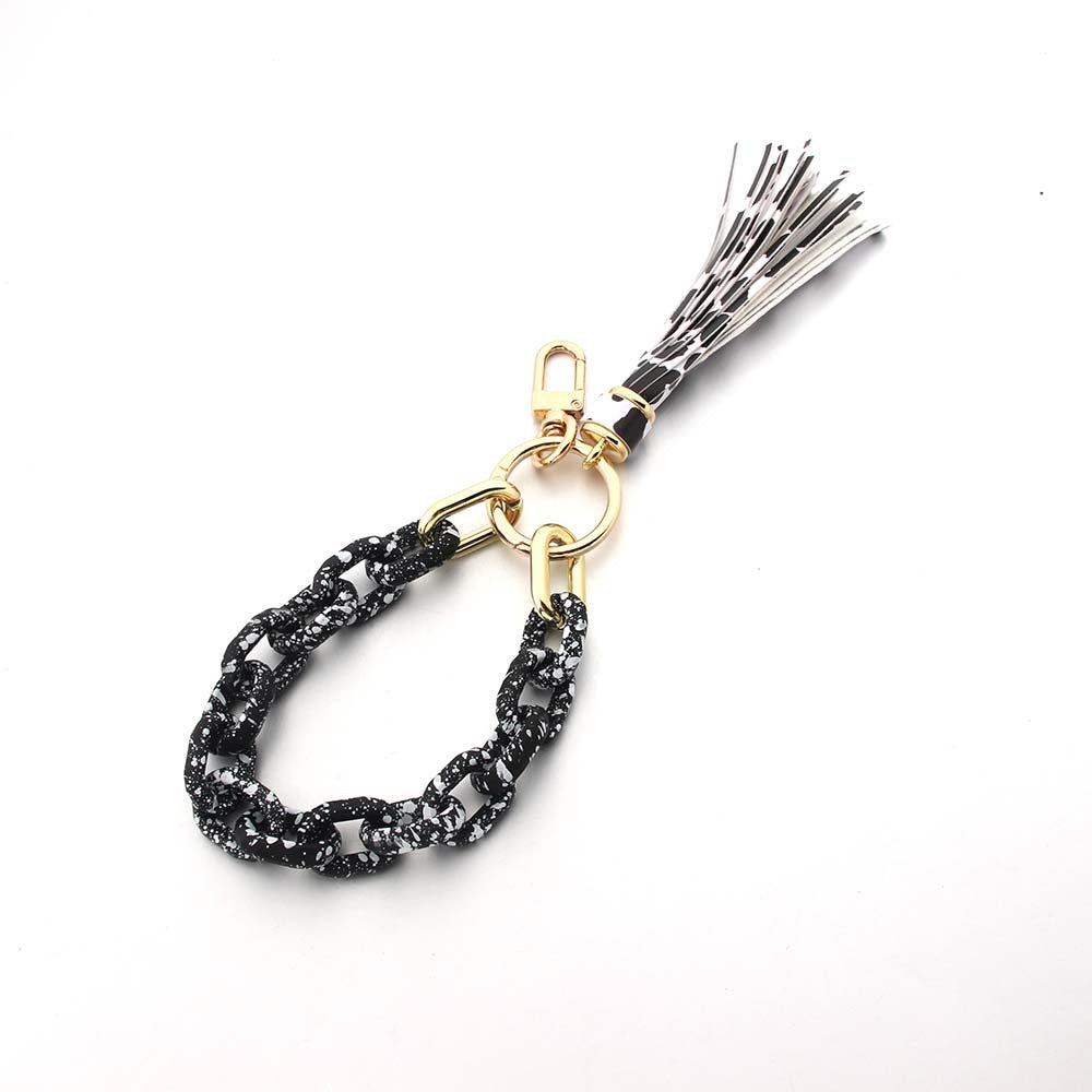 Wholesale Leopard Print Acrylic PU Tassel Bracelet Keychain