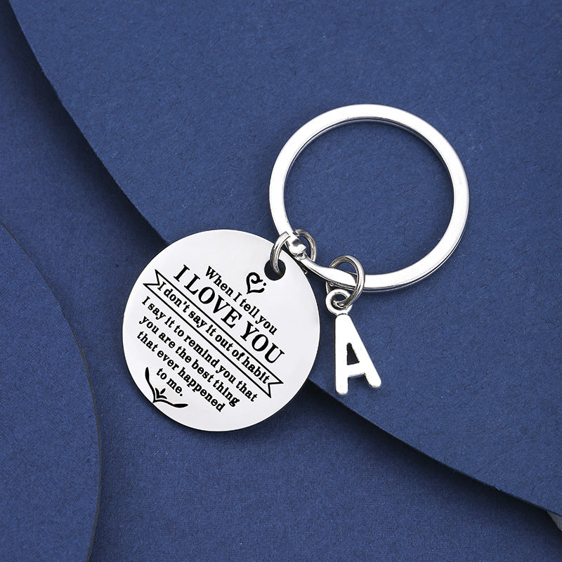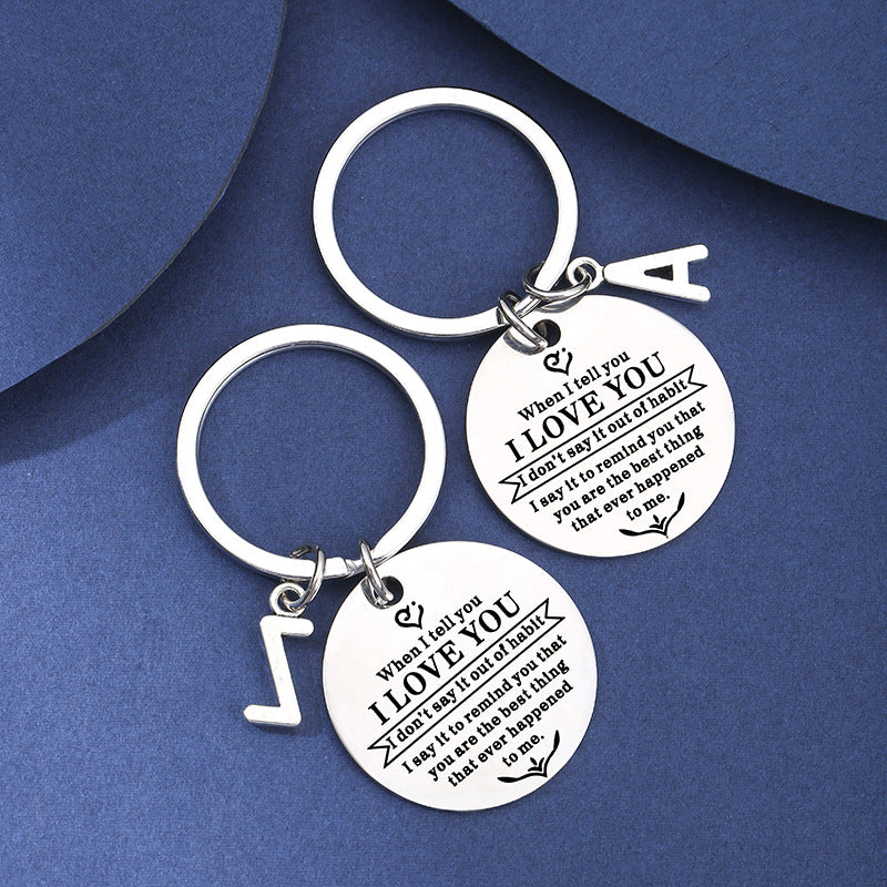 Wholesale Stainless Steel Titanium Steel Laser Engraving I LOVE YOU Letter Keychain