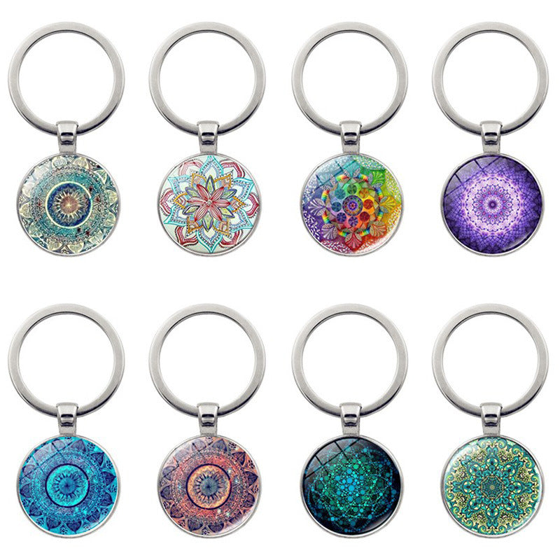 Wholesale Zinc Alloy Mandala Flower of Life Time Gem Creative Keychain
