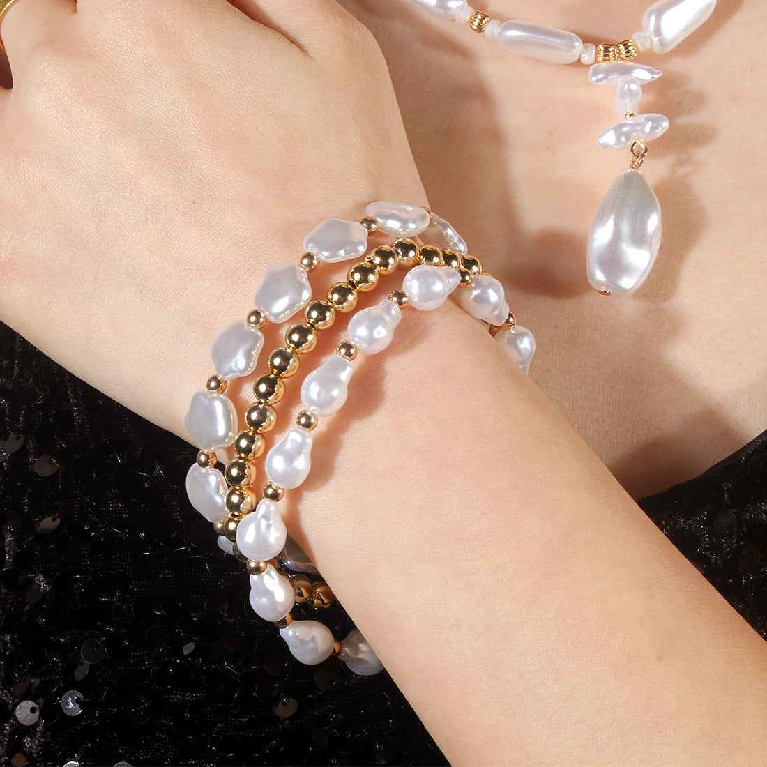 Wholesale simple cold style multi-layer special-shaped pearl bracelet