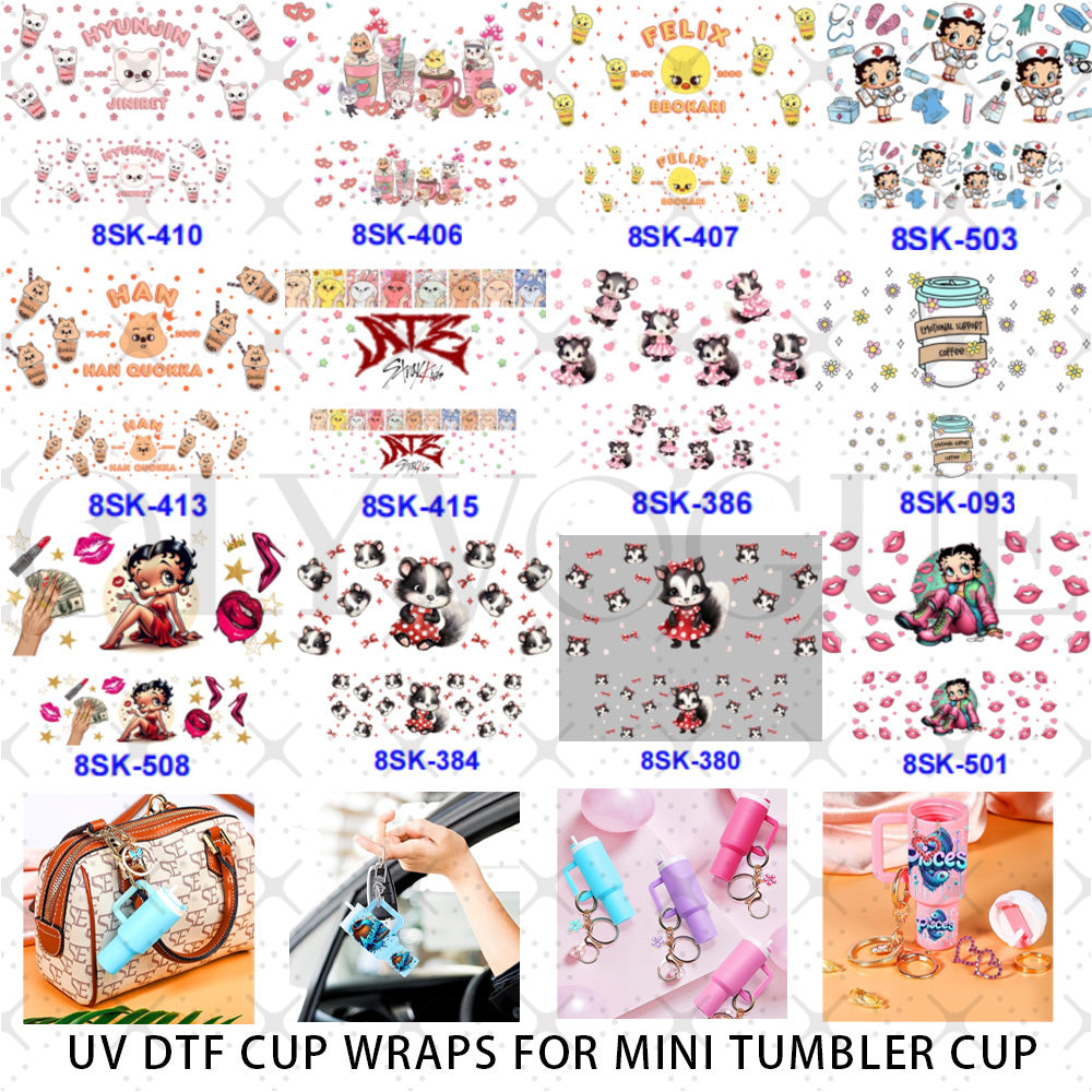 Wholesale 2/4/8 Pcs Cute Animals Little Girl UV DTF Wraps Mini Tumbler Cup Keychain Lipstick Holders