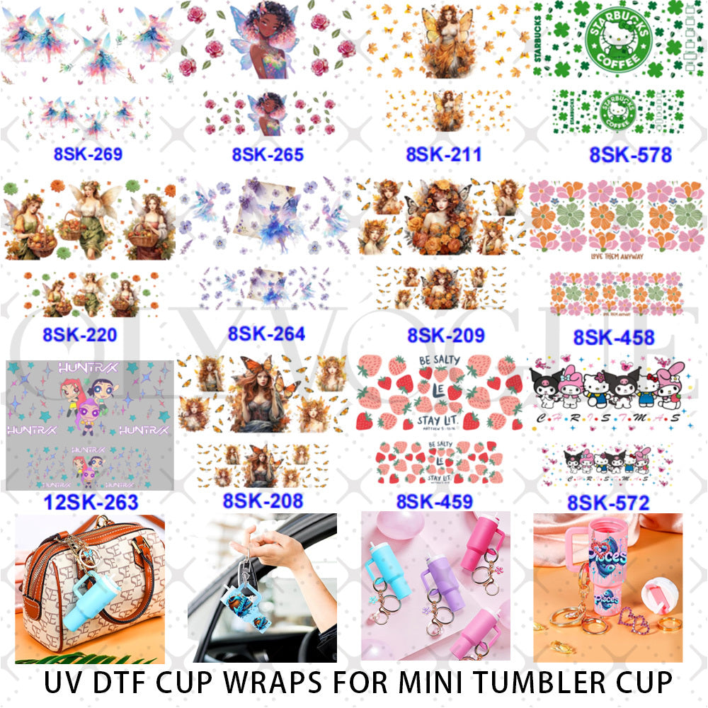 Wholesale 2/4/8 Pcs Dreamy Elf UV DTF Wraps Mini Tumbler Cup Keychain Lipstick Holders