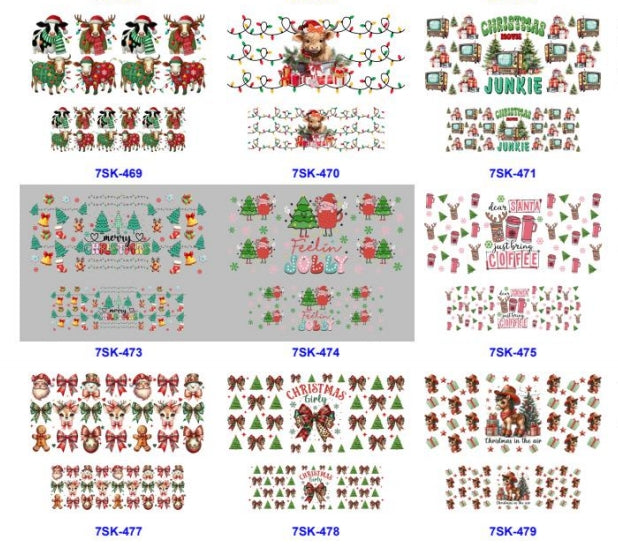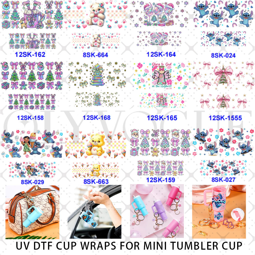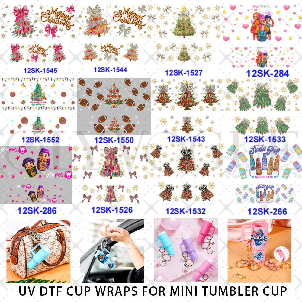 Wholesale 8pcs Christmas Theme Mini Cup UV DTF Wraps