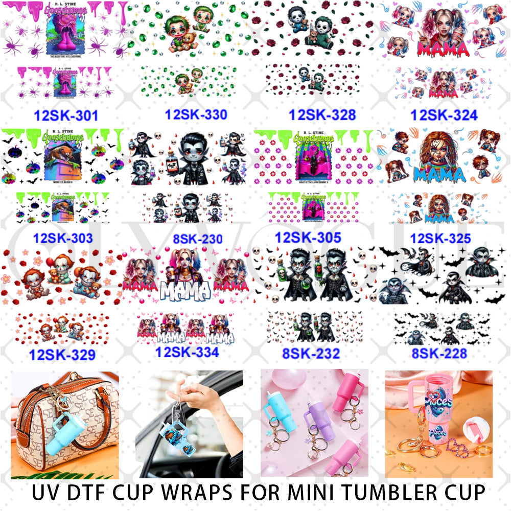Wholesale 8pcs Cartoon animal skeleton Mini Cup UV DTF Wraps