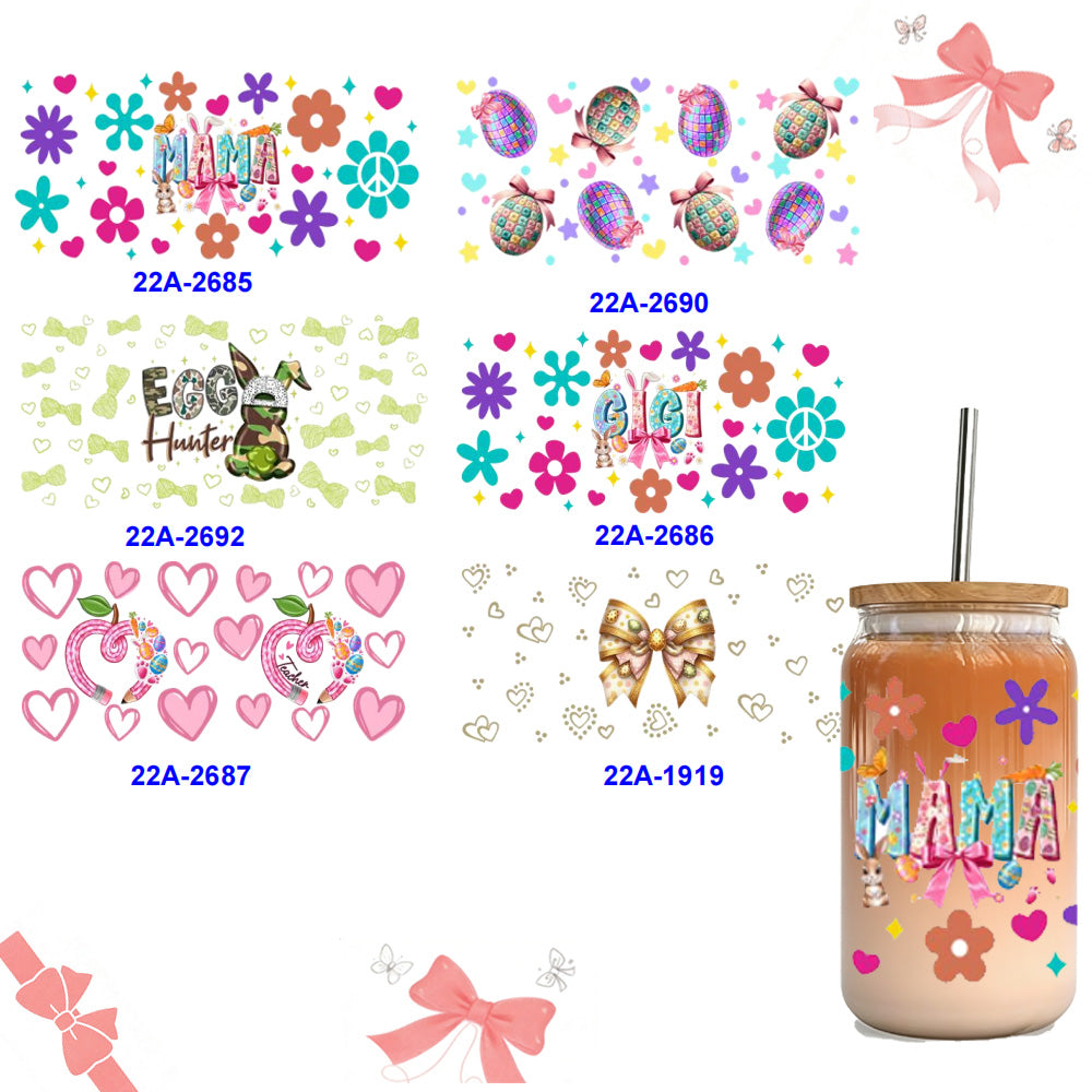 Wholesale 1pcs/5pcs Pink Love Bow Butterfly Mother's Day 16oz Cup UV DTF Wraps