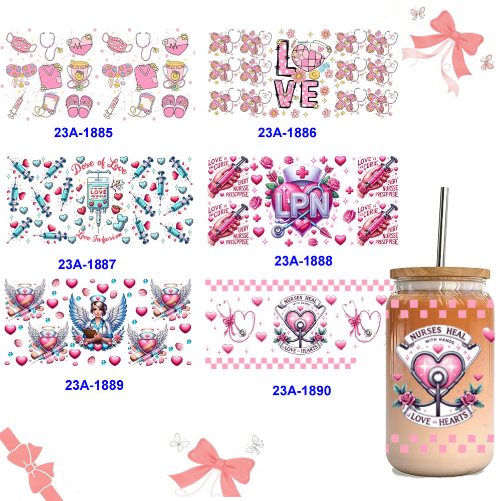 Wholesale 1pcs/5pcs Band Aid Love Nurse Hat Medical Series 16oz Cup UV DTF Wraps