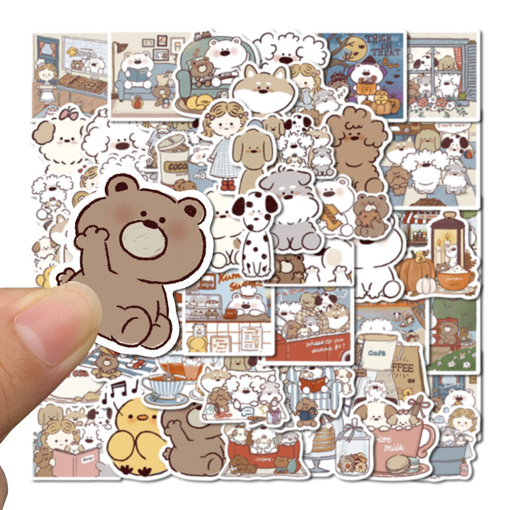 Wholesale 50pcs cartoon image healing bear and dog waterproof vinyl stickers