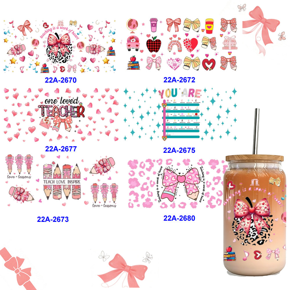 Wholesale 1pcs/5pcs School Bus Notes Bow Pencil Teacher's Day 16oz Cup UV DTF Wraps