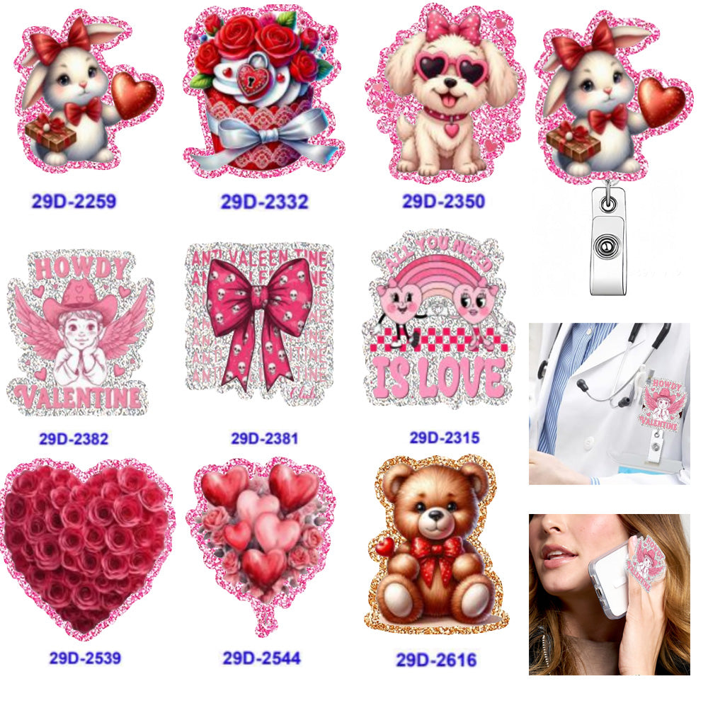 Wholesale 5 Pcs/10 Pcs/20 Pcs Cute Cartoon Acrylic Flatbacks (Valentine's Day/Animal/Flower) for DIY Badge Reels & Phone Stands