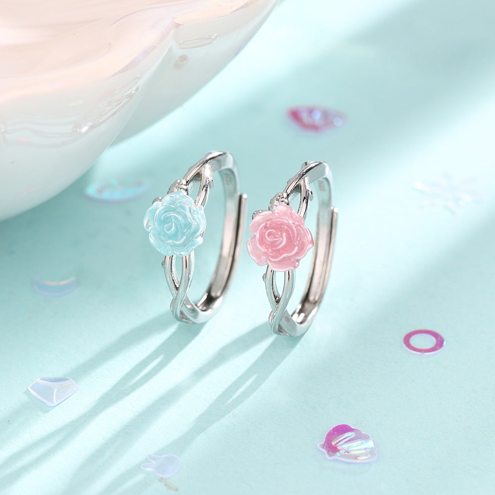 Wholesale Pink Blue Rose Ring Romantic Valentine' s Day Ring