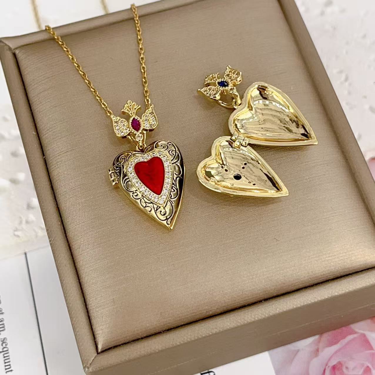 Wholesale Valentine' s Day heart-shaped hinged box pendant necklace