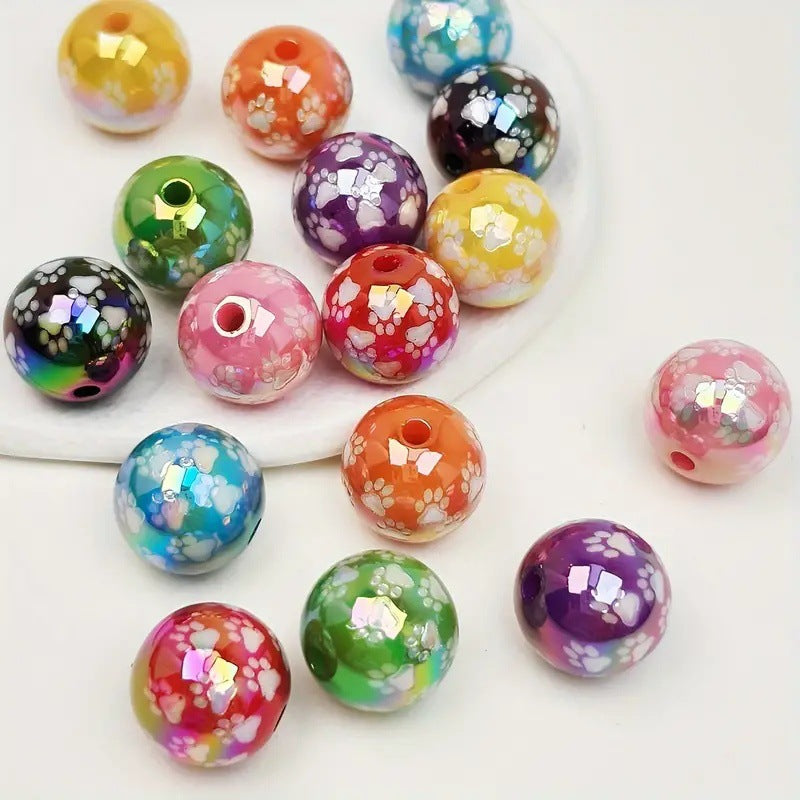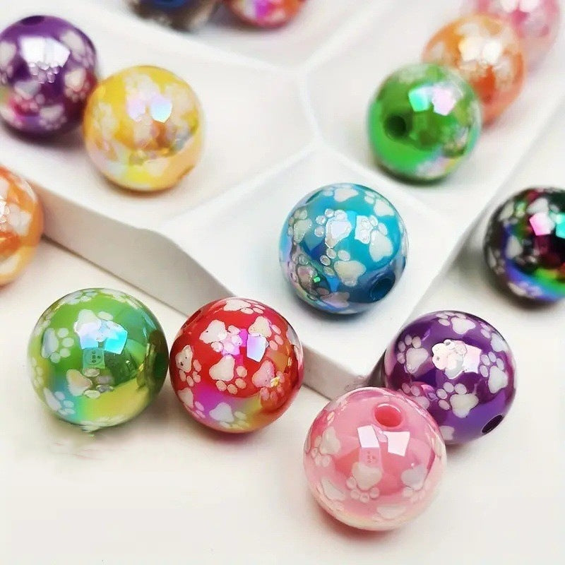 Wholesale 100PCS/PACK UV Coloured Acrylic Cat's Paw Pattern Beads