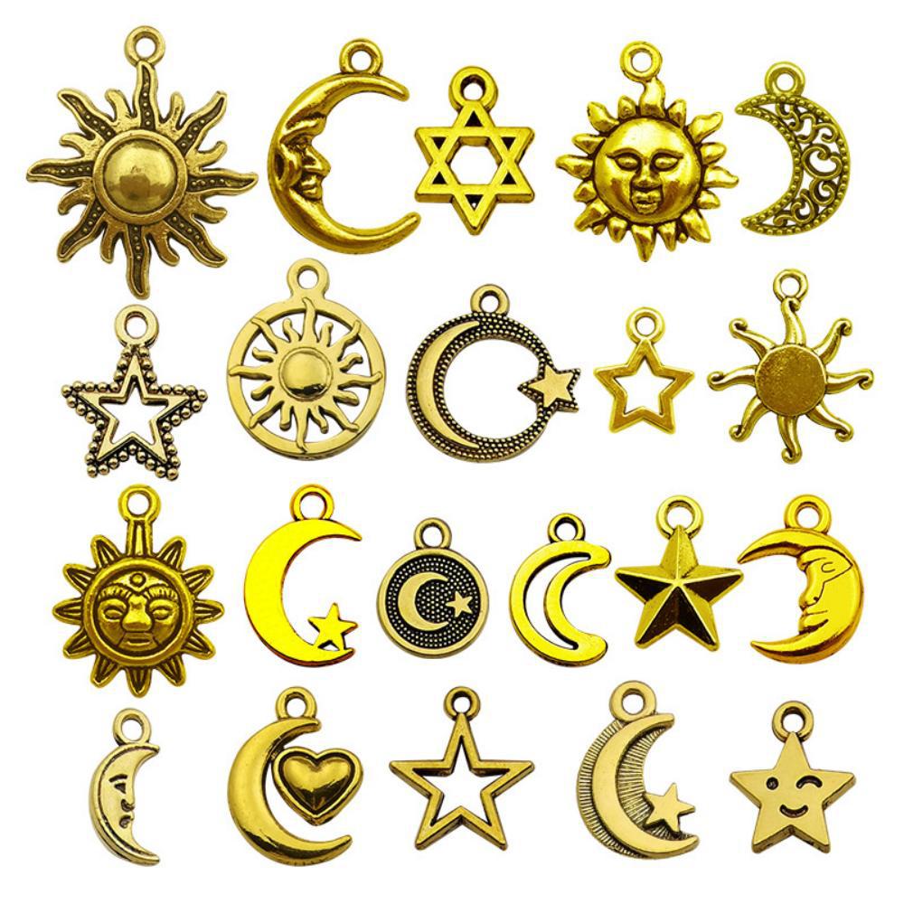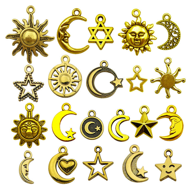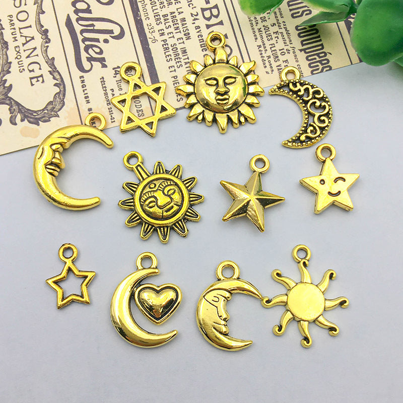 Wholesale 1 Antique Gold Alloy Simulation Sun, Moon, Stars DIY Pendant