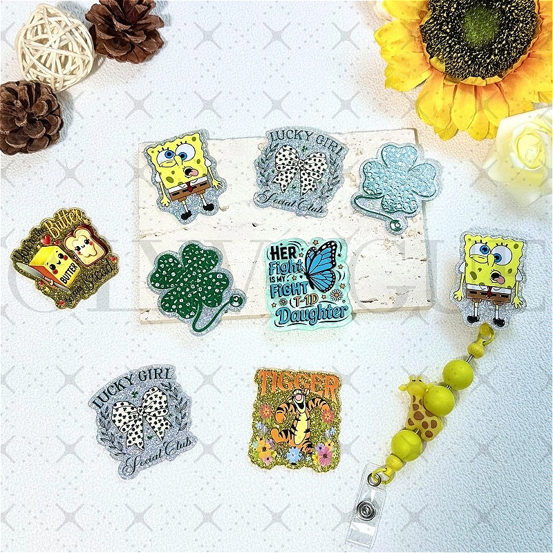 Wholesale 5 Pcs/10 Pcs/20 Pcs Cute Cartoon Acrylic Flatbacks ( St. Patrick's Day /Four Leaf Clover/bow) for DIY Badge Reels & Phone Stands OLY Exclusive