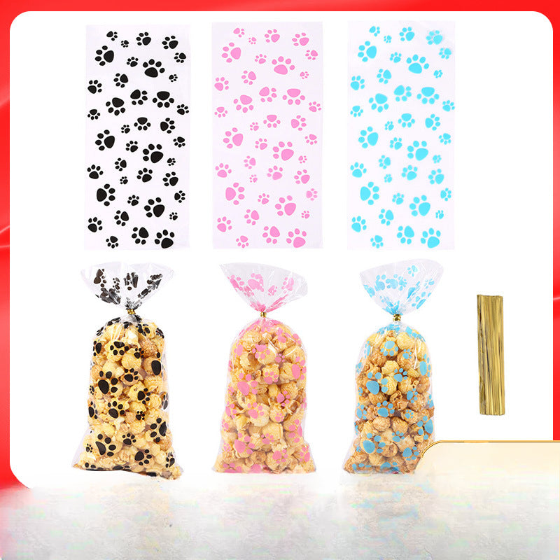 Wholesale Cartoon Puppy Claw Printed Transparent Candy Bag Food Sealing Tie Silk Bag