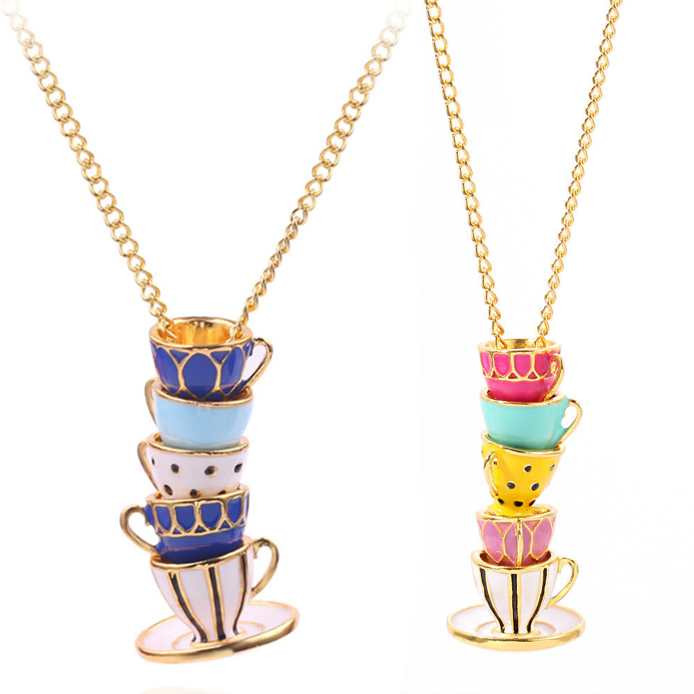 Wholesale Enamel Glaze Tea Cup Long Alloy Necklace