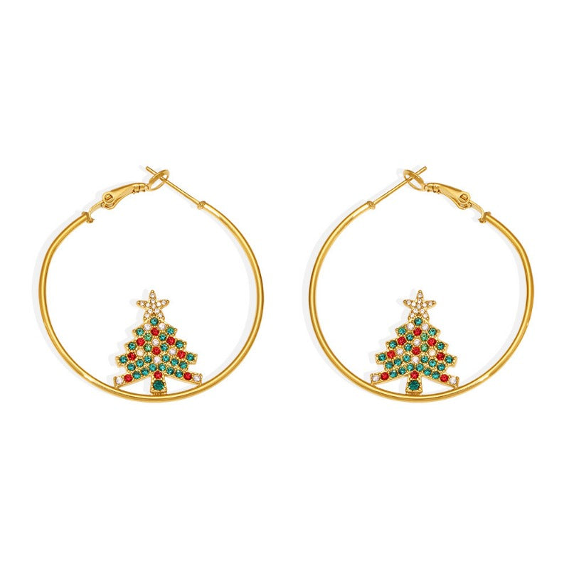 Wholesale Light Luxury Colorful Zircon Christmas Tree Stainless Steel Earrings