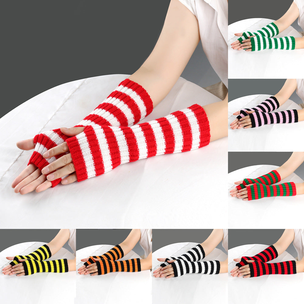 Wholesale Mid To Long Christmas Warm Striped Woolen Gloves