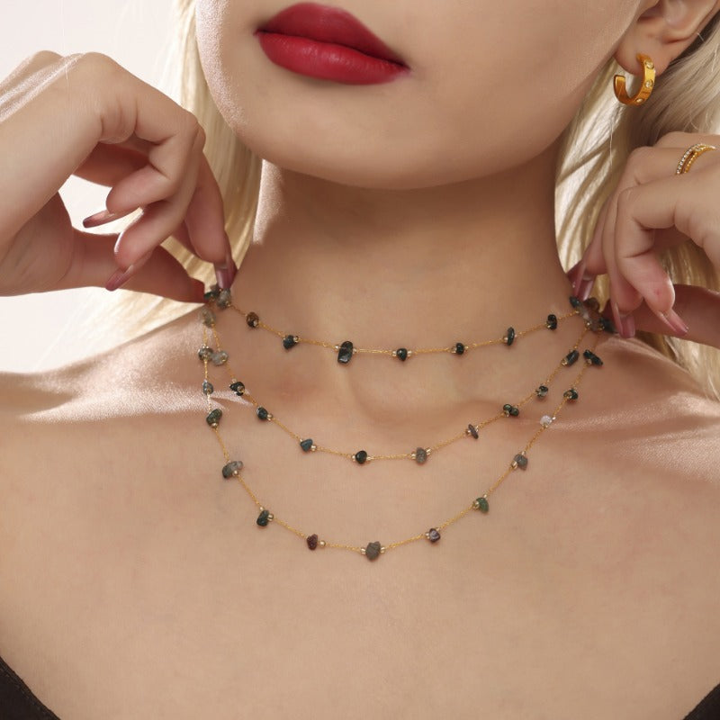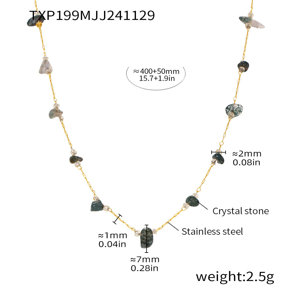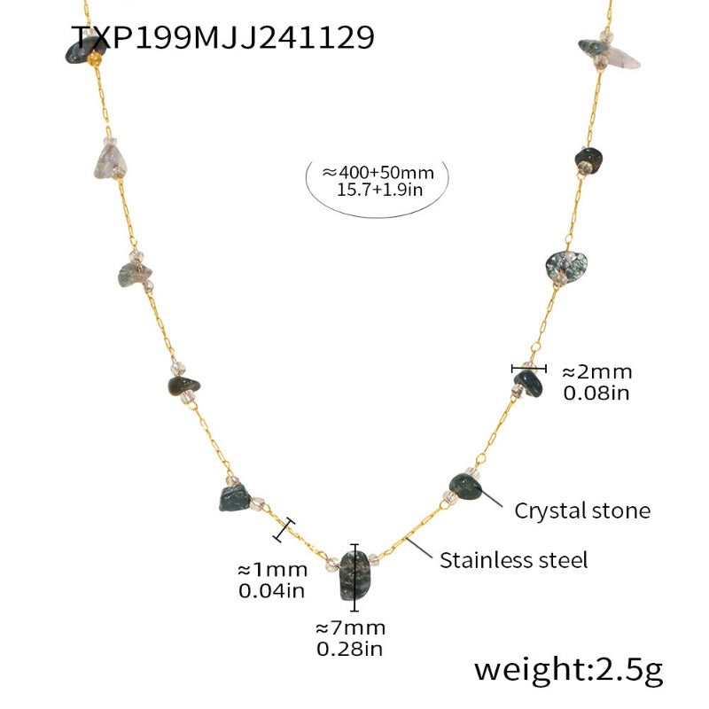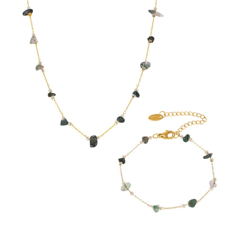 Wholesale Natural Crushed Crystal Stone Grass Green Necklace Bracelet Stainless Steel Handmade Chain Jewelry Set