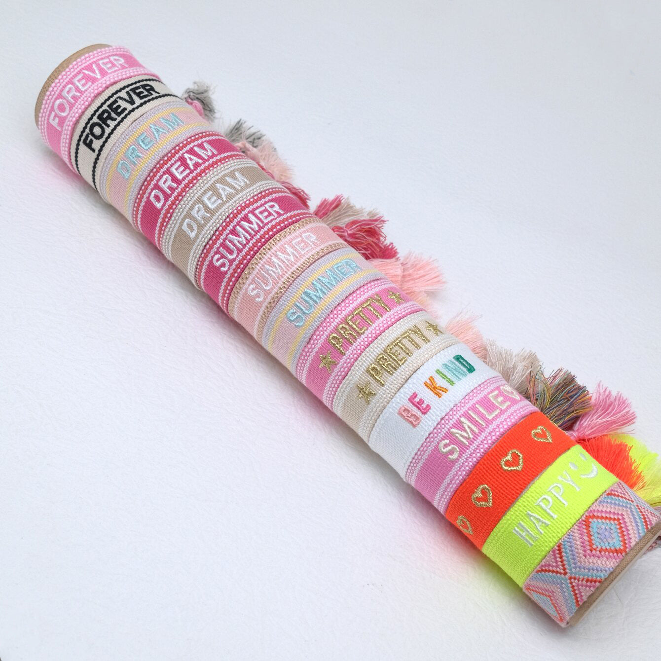 Wholesale Polyester Cord Weaving Embroidered Logo Letter Tassels Bracelets