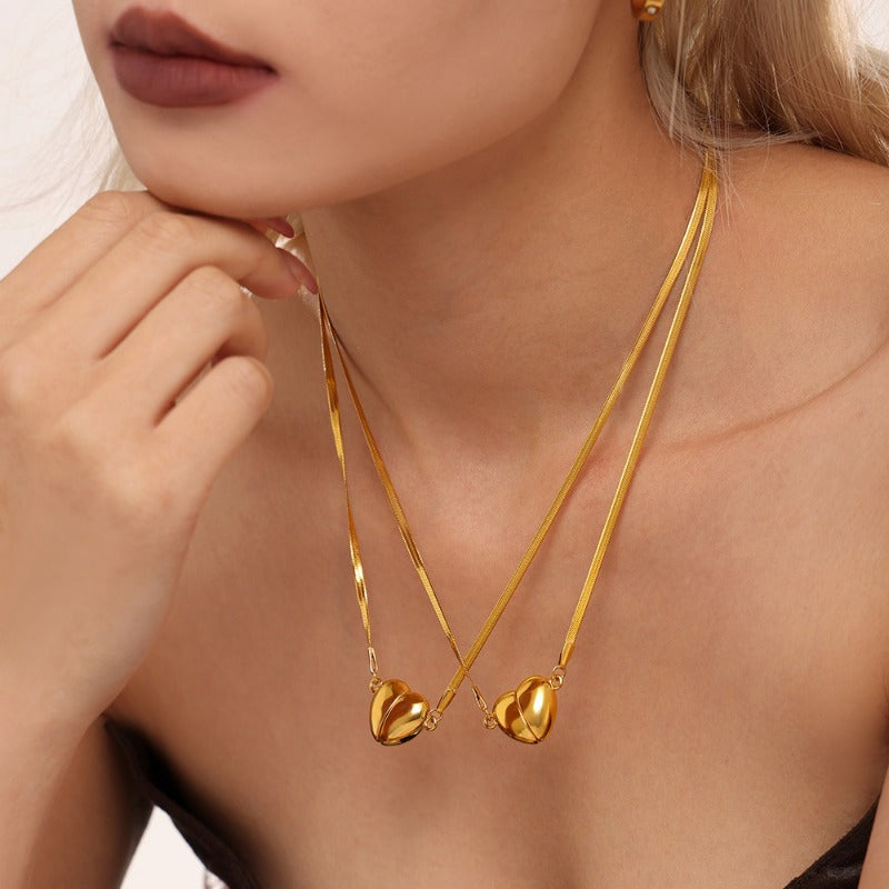 Wholesale Stainless Steel Sweet Love Heart Super Strong Magnet Detachable Clavicle Temperament Necklaces