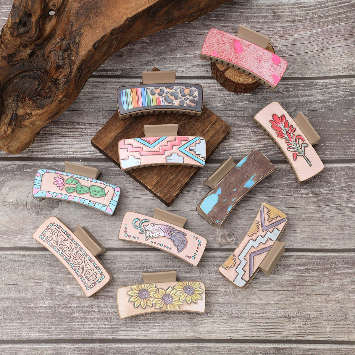 Wholesale Western Style Cactus Feather Sunflower Leather Shark Clip Hairpin