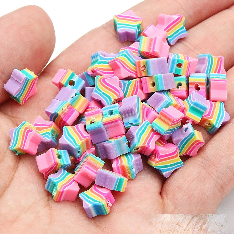 Wholesale 100PCS/Pack Rainbow Heart Star Smooth Beads10mm