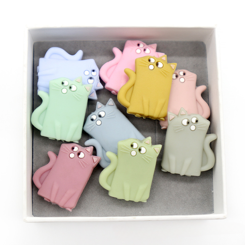 Wholesale 10pcs Silicone Cartoon Cat Mom Focal beads