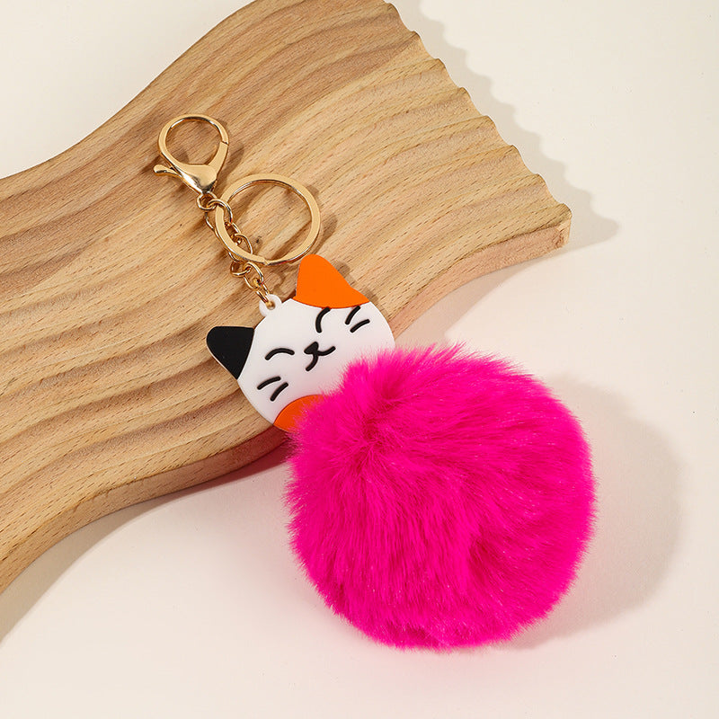 Wholesale Cartoon Three Flower Cat Pom Pom Keychain