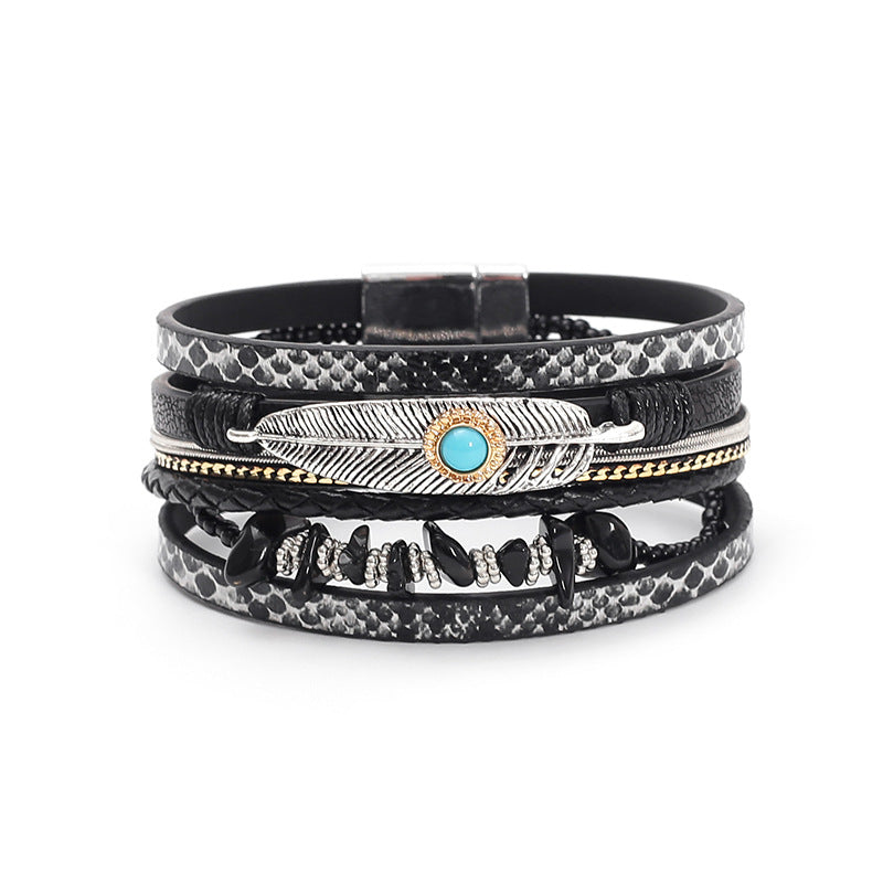 Wholesale Bohemian Feather Leather Turquoise Magnet Clasp Bracelet