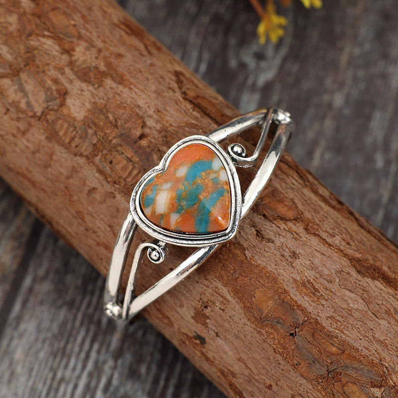 Wholesale Retro Western style heart inlaid turquoise alloy open bracelet