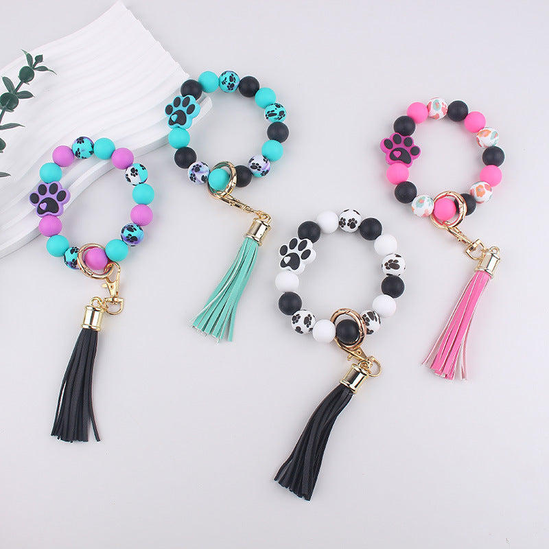 Wholesale Silicone dog paw print keychain bracelet keychain pendant
