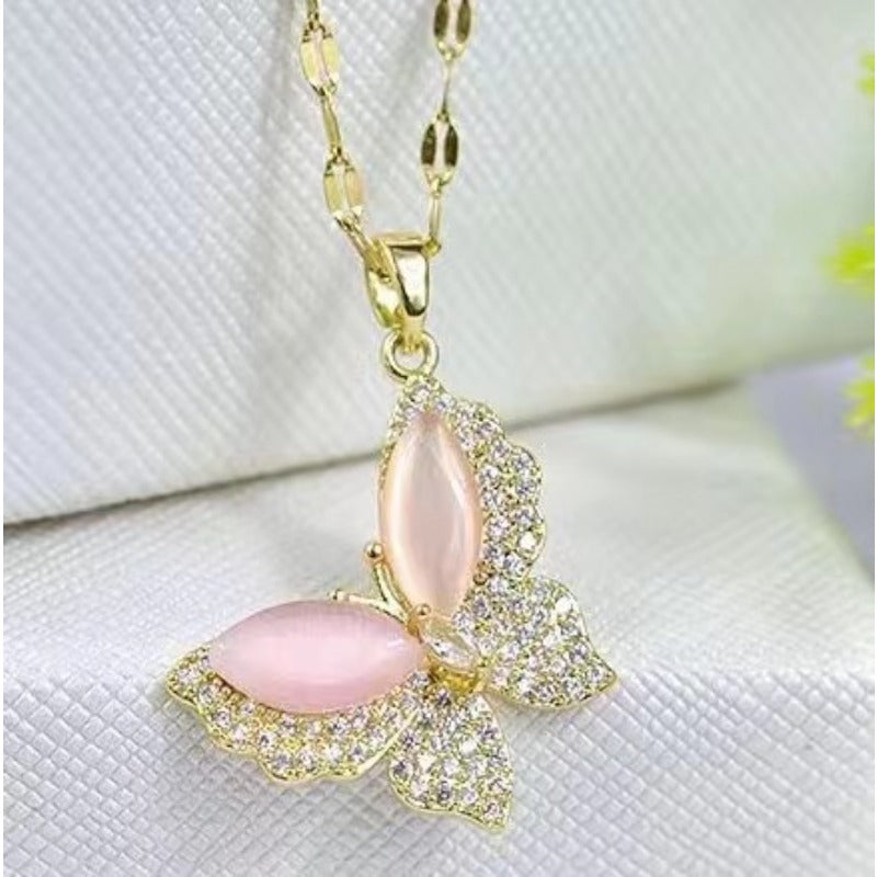 Wholesale Titanium Steel Rainbow Crystal Butterfly Necklaces