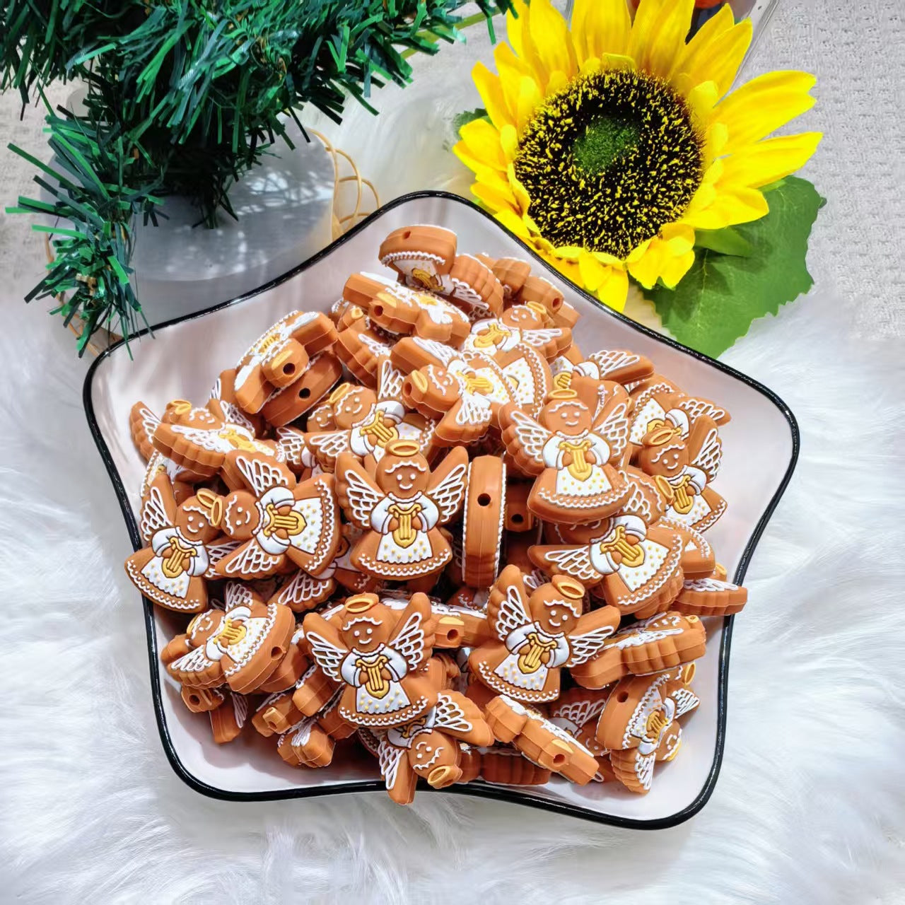 Wholesale 10pcs/ pack Gingerbread Man Angel Silicone Cartoon Beads