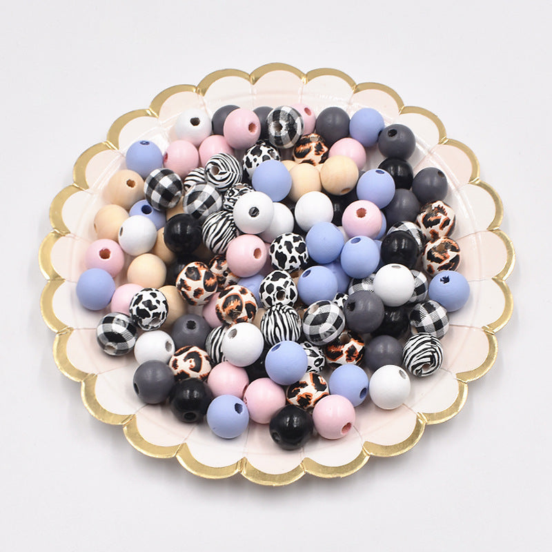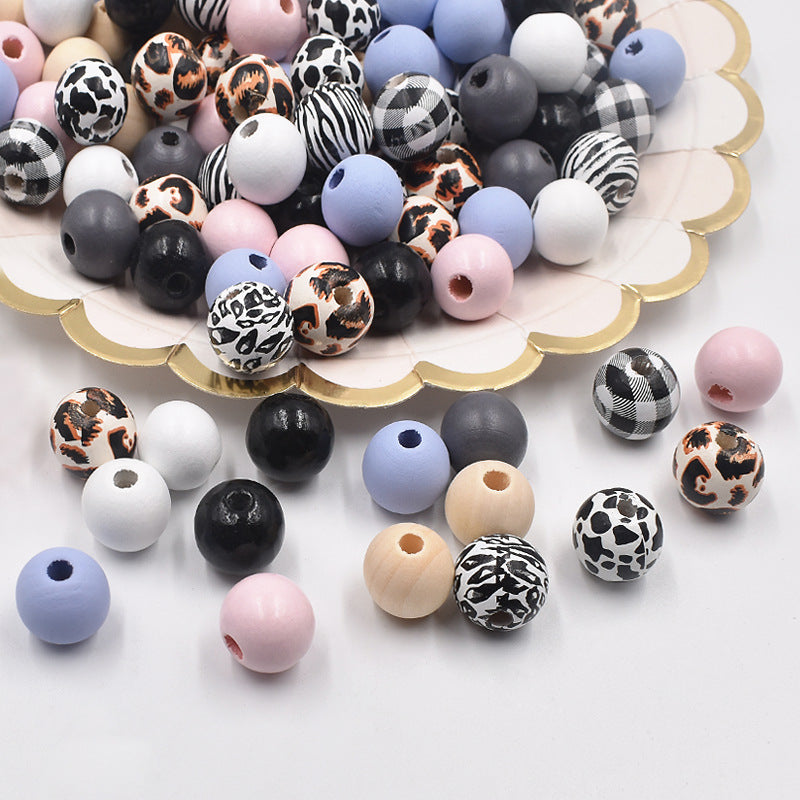 Wholesale 250PCS DIY Printed Leopard Print 16MM Vintage Colored Wood Beads