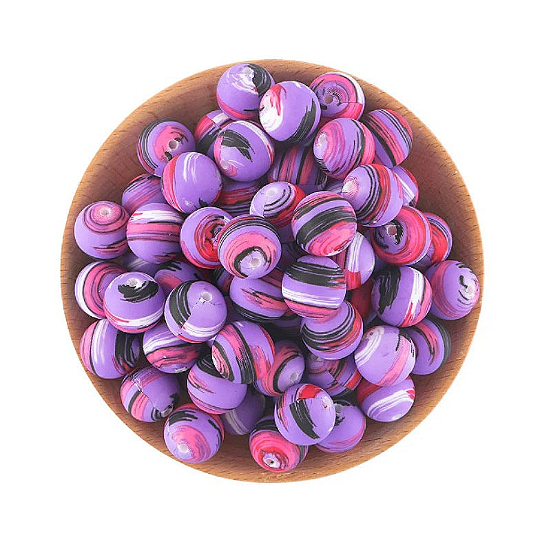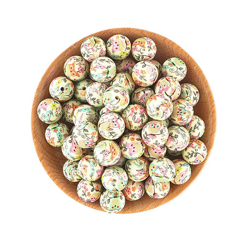 Wholesale 50pcs 15mm Water Transfer Graffiti Silicone Beads