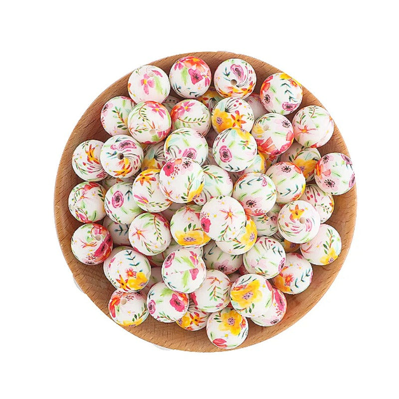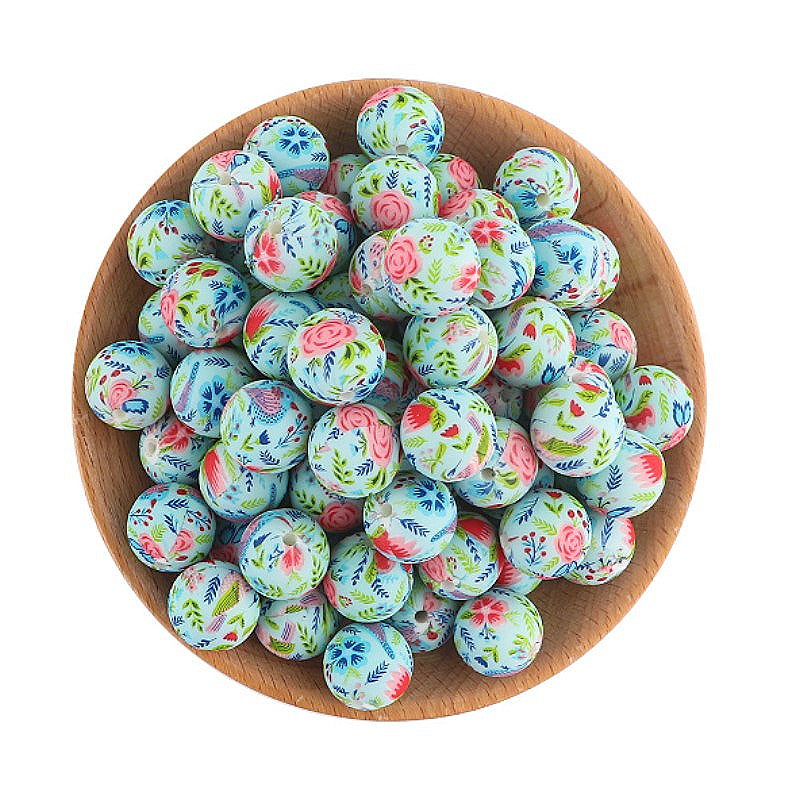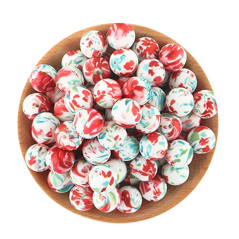 Wholesale 50pcs 15mm Water Transfer Peony Pattern Silicone Beads