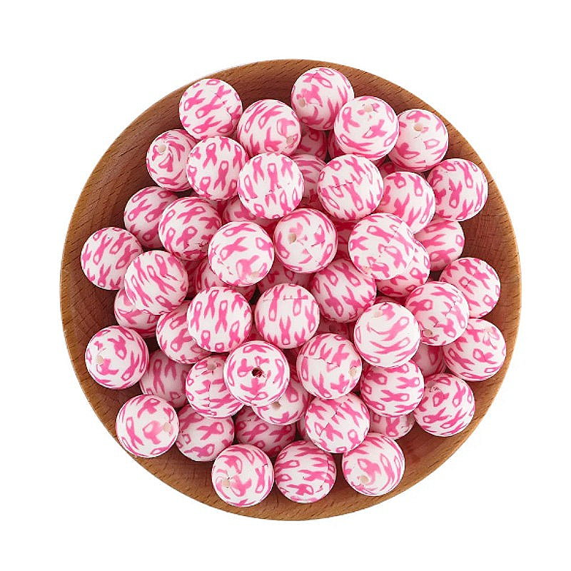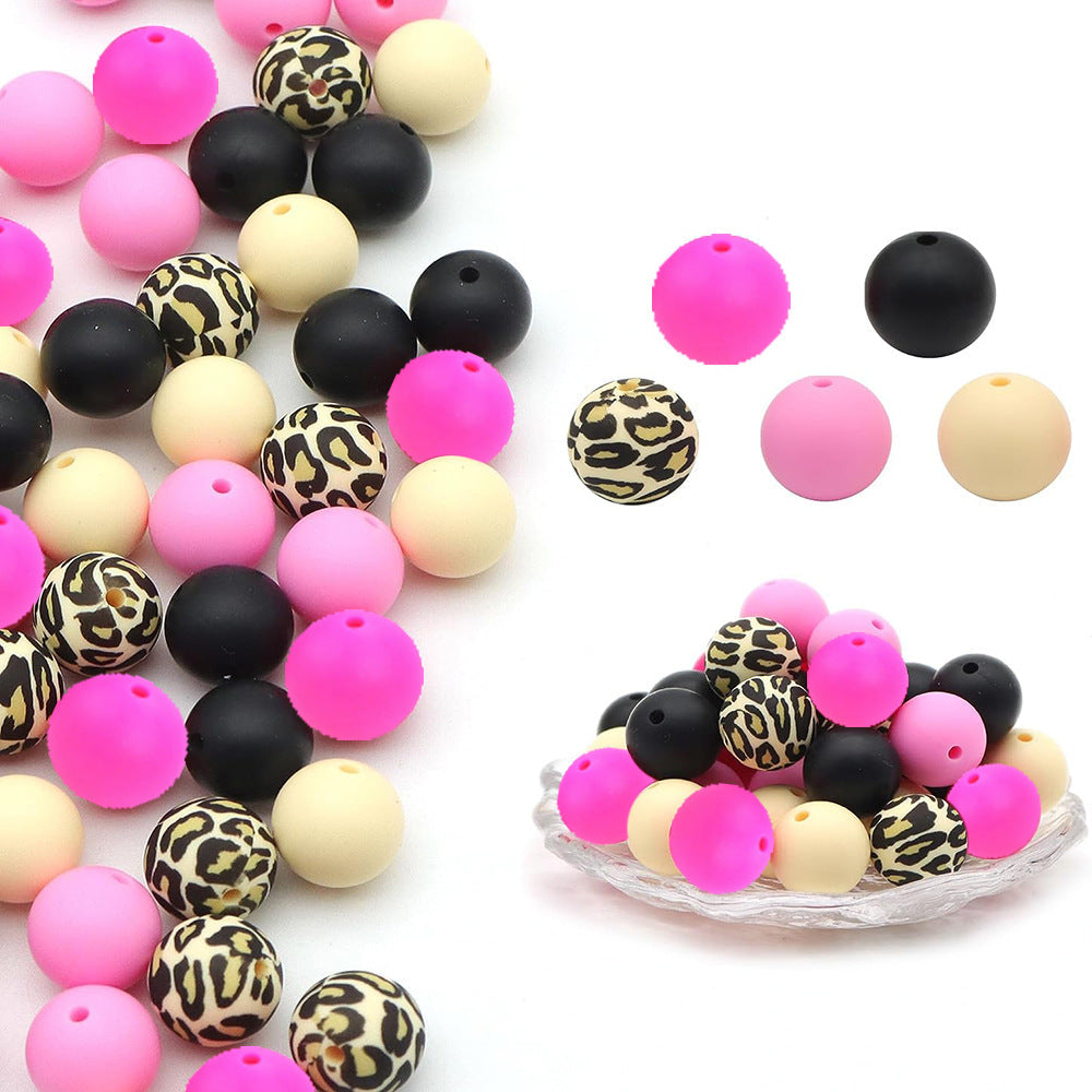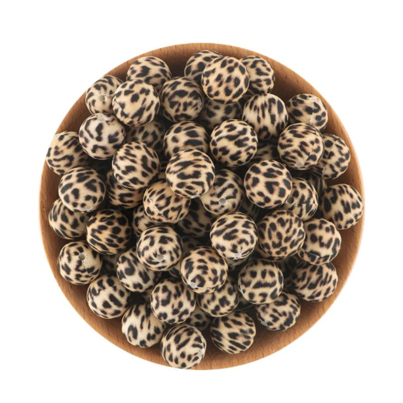 Wholesale 50pcs 15mm Water Transfer Cheetah Pattern Silicone Beads